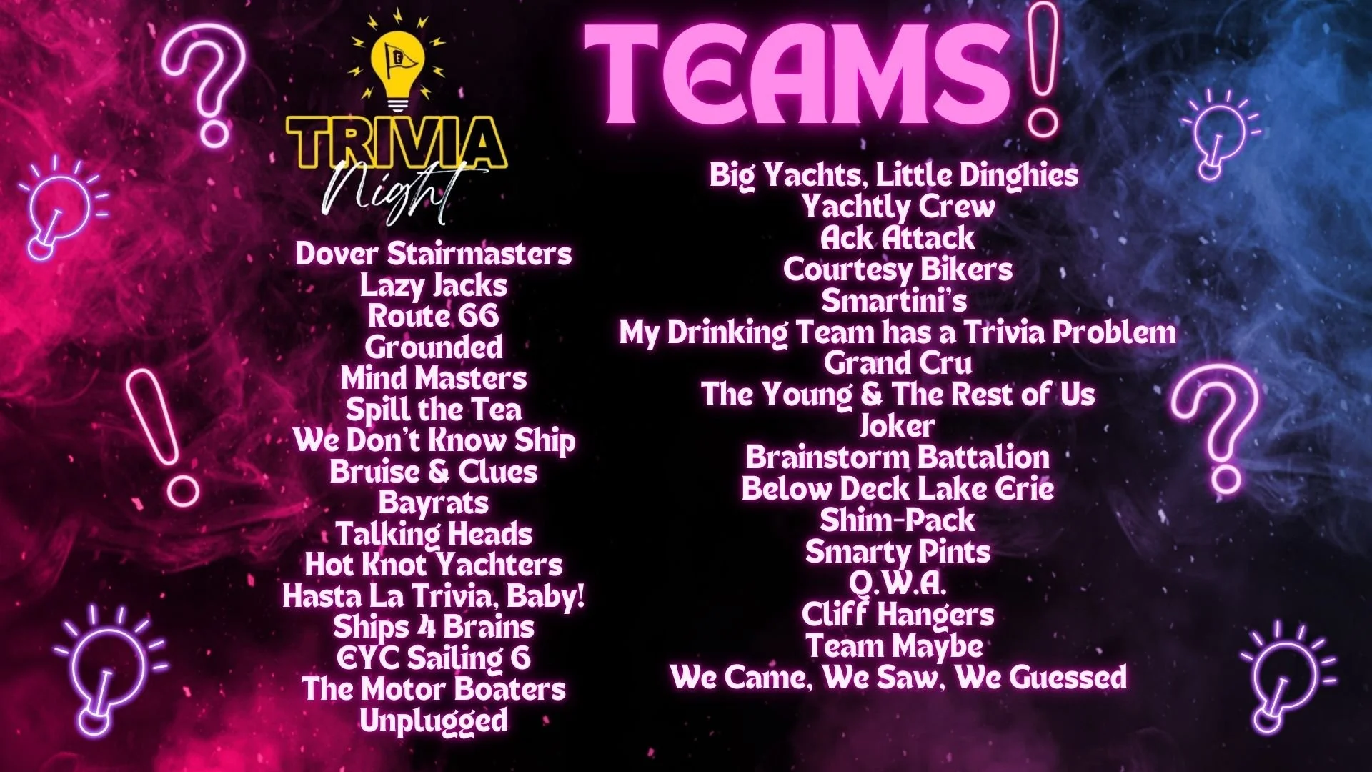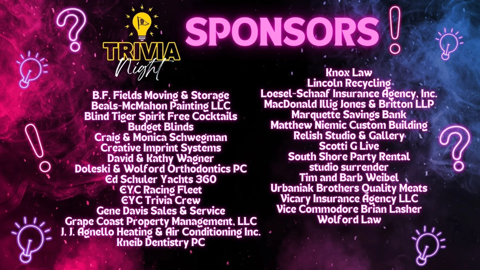 Trivia 2026 - It’s almost here! Starting next Thursday January 22nd… Thank you to our participating teams and sponsors!!
